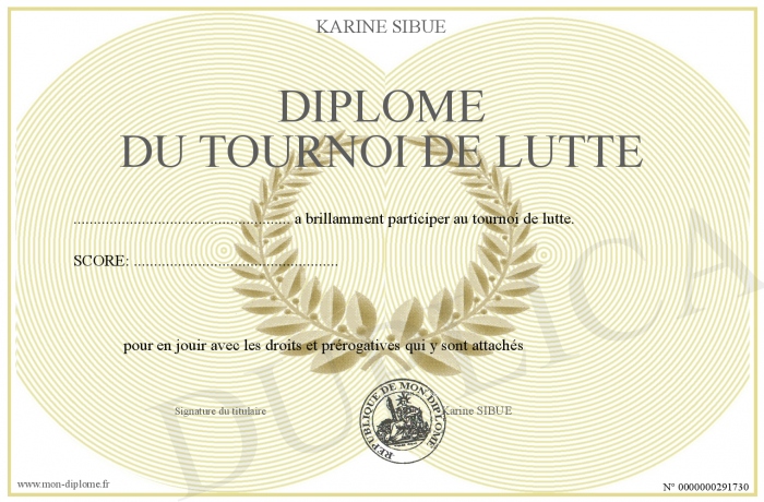 • Diplôme du Tournoi de Lutte