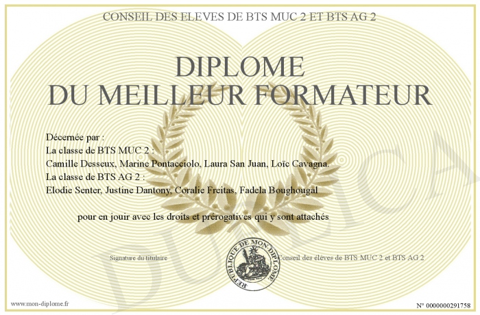 Envoyez par email votre Diplôme du meilleur formateur personalisé