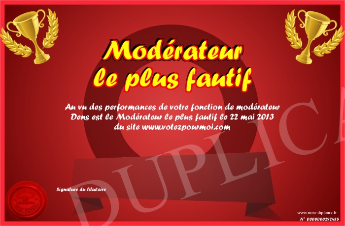 Envoyez par email votre Modérateur le plus fautif personalisé