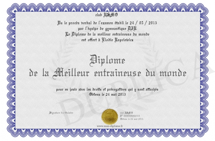 Envoyez par email votre Diplôme de la Meilleur entraineuse du monde personalisé