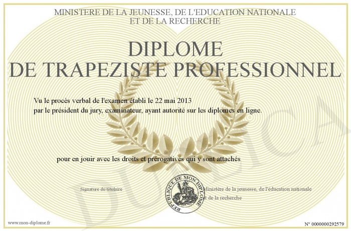 Envoyez par email votre Diplôme de trapéziste professionnel personalisé