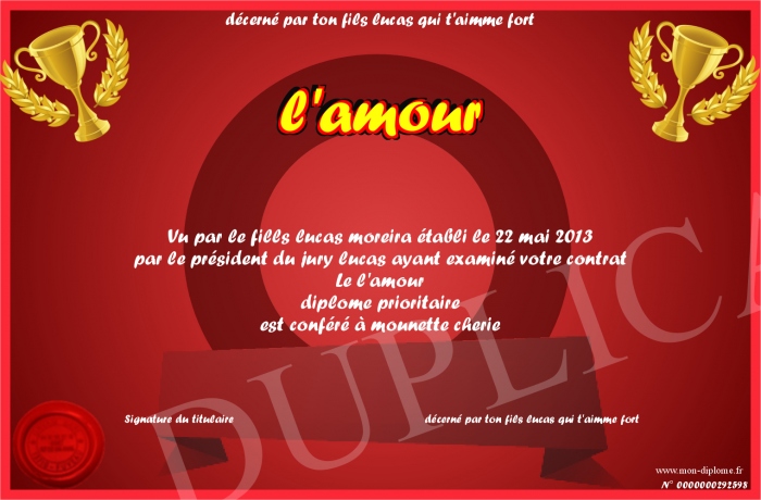 envoyé par le décerné par ton fils lucas qui t'aimme fort !