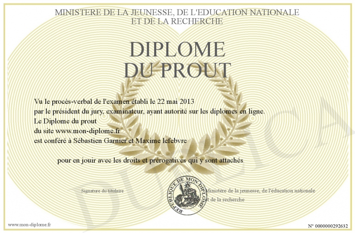 Envoyez par email votre Diplôme du prout personalisé