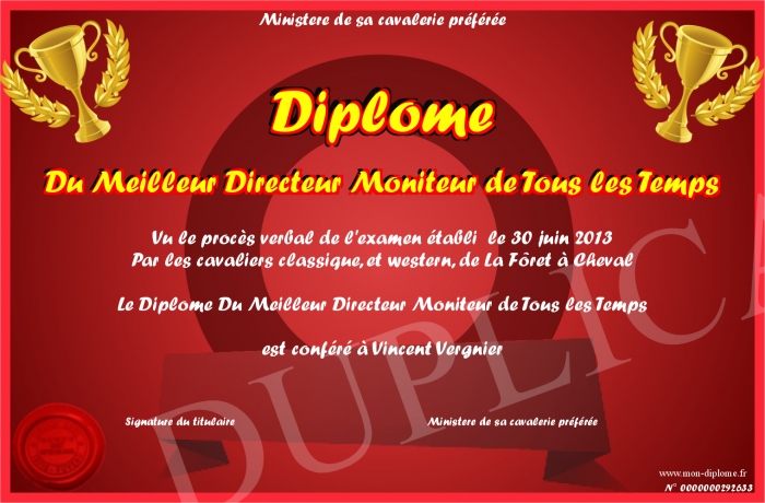 Envoyez par email votre Diplôme Du Meilleur Directeur Moniteur de Tous les Temps personalisé