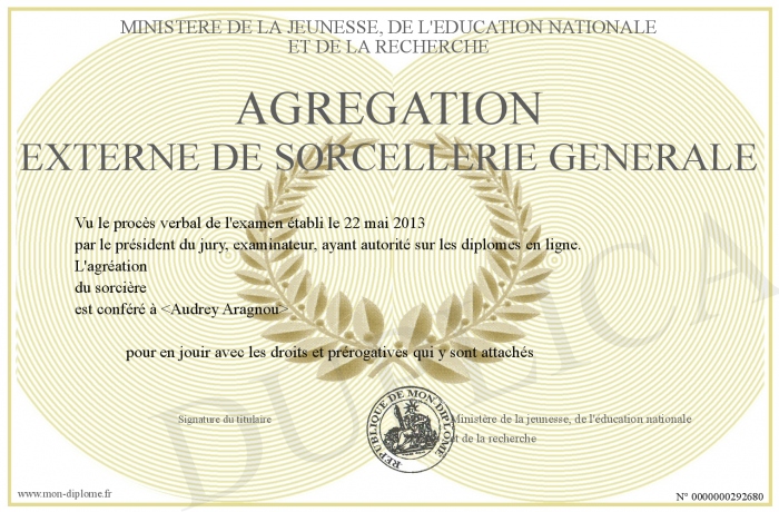 Envoyez par email votre Agrégation externe de Sorcellerie générale personalisé