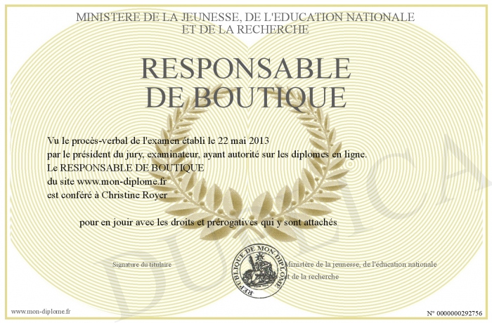 Envoyez par email votre RESPONSABLE DE BOUTIQUE personalisé