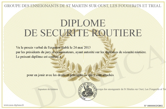 Envoyez par email votre Diplôme de sécurité routière personalisé
