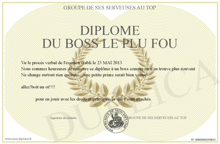 Envoyez par email votre Diplôme du BOSS LE PLU FOU personalisé
