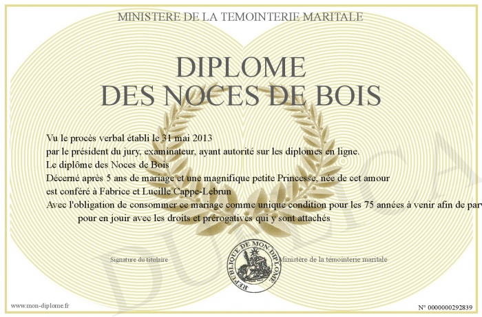 Envoyez par email votre Diplôme des Noces de Bois personalisé