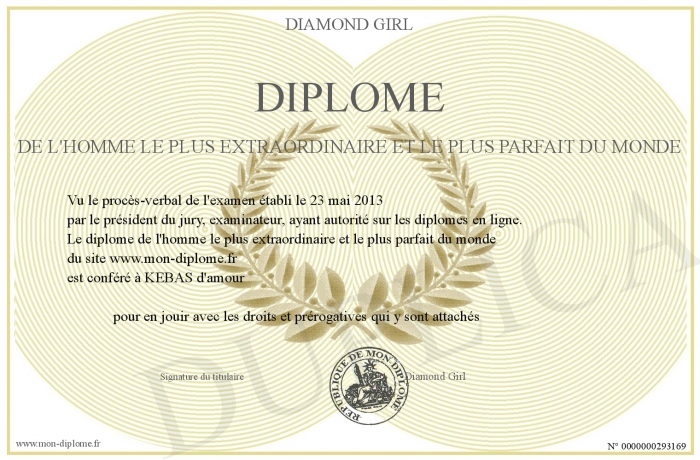 Envoyez par email votre diplome de l'homme le plus extraordinaire et le plus parfait du monde personalisé