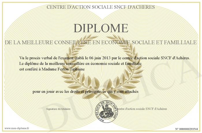 Envoyez par email votre diplôme de la meilleure conseillére en économie sociale et familliale personalisé
