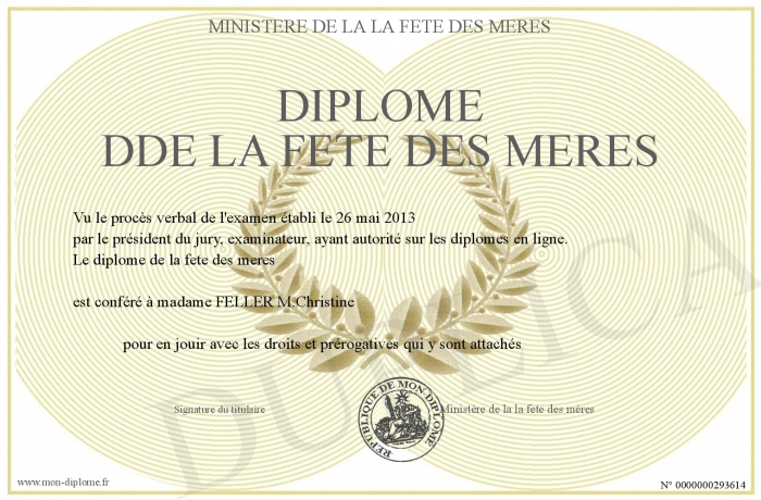 Envoyez par email votre Diplôme dde la fete des mères personalisé