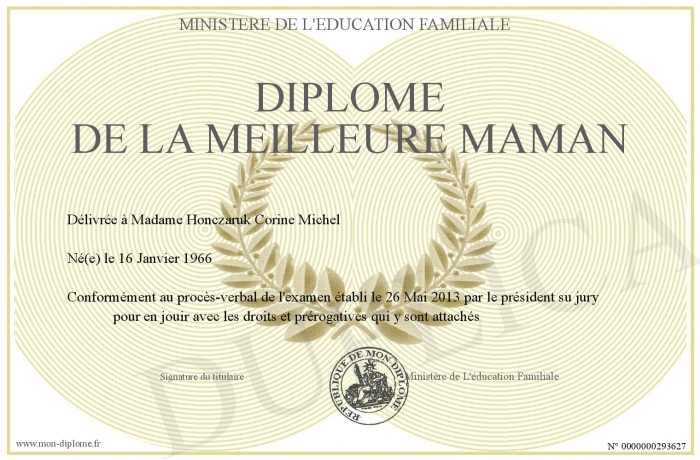 Envoyez par email votre Diplôme de la meilleure Maman personalisé