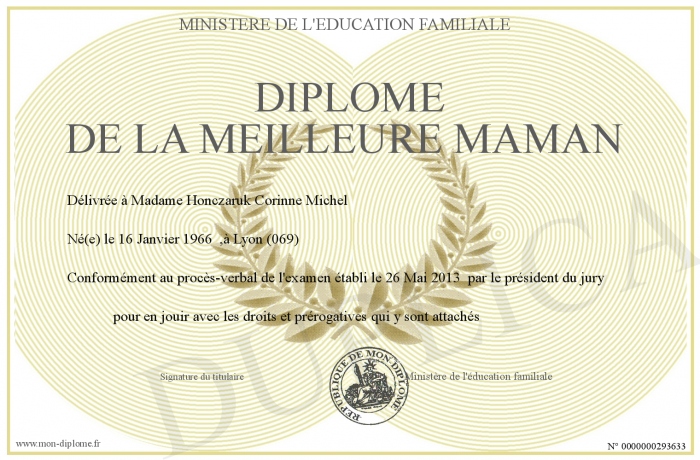 Envoyez par email votre Diplôme de la meilleure maman personalisé