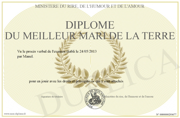 Envoyez par email votre Diplome du meilleur mari de la terre personalisé