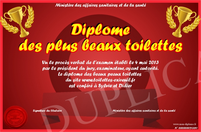 Envoyez par email votre Diplôme des plus beaux toilettes personalisé