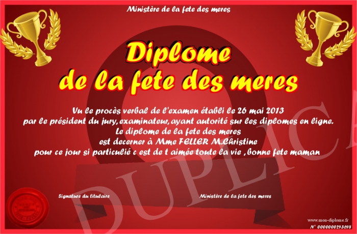 Envoyez par email votre Diplome de la fete des meres personalisé