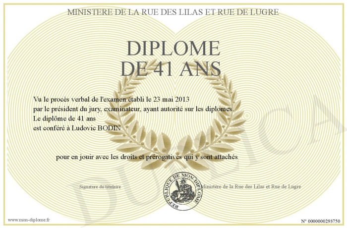 Envoyez par email votre Diplôme de 41 ans personalisé