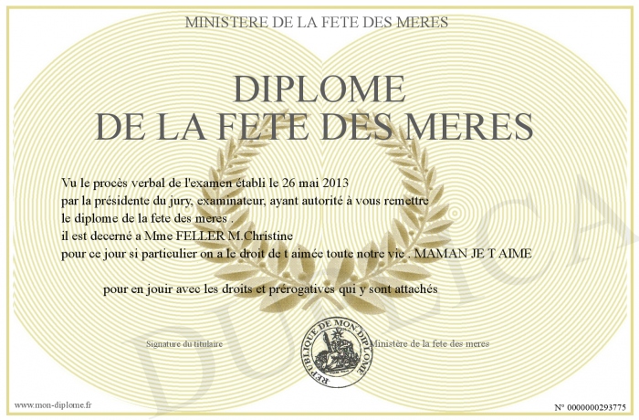 Envoyez par email votre Diplôme de la fete des meres personalisé