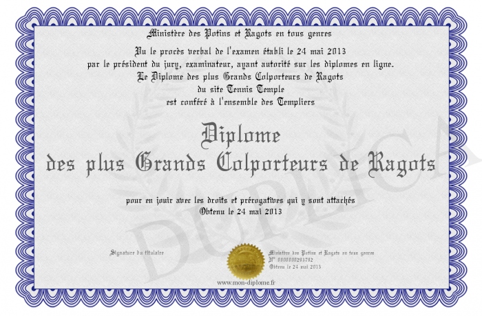 Envoyez par email votre Diplôme des plus Grands Colporteurs de Ragots personalisé