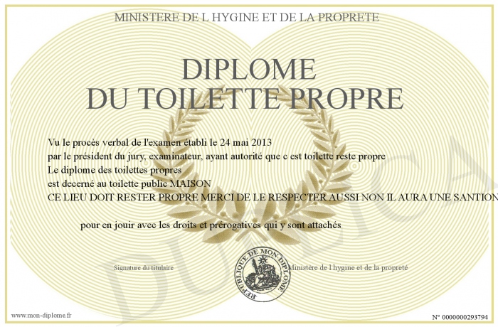 Envoyez par email votre diplome du toilette propre personalisé