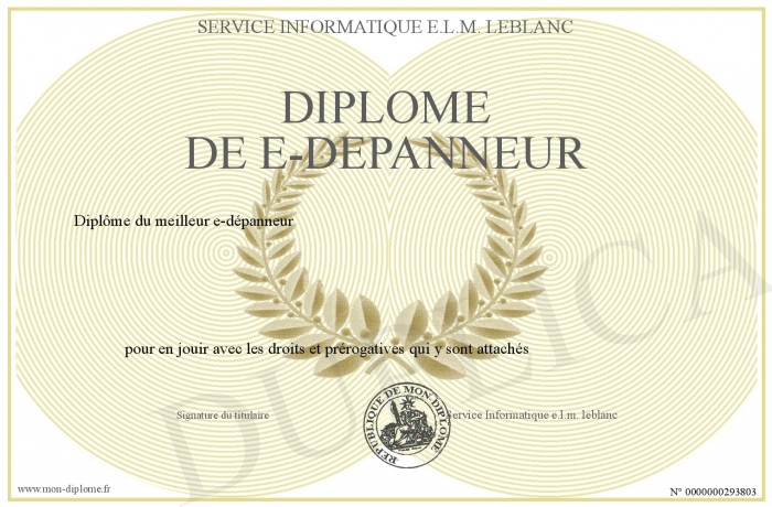 Envoyez par email votre Diplôme de e-Dépanneur personalisé