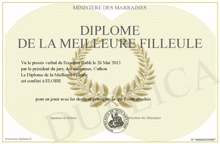 Envoyez par email votre Diplôme de la Meilleure Filleule personalisé