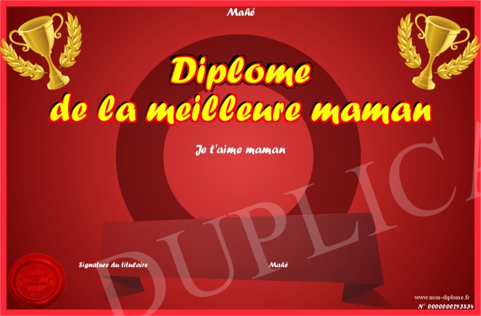 Envoyez par email votre Diplôme de la meilleure maman personalisé