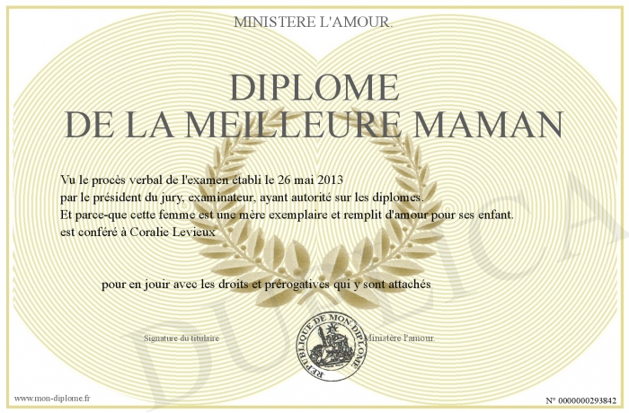 Envoyez par email votre Diplome de la meilleure Maman personalisé
