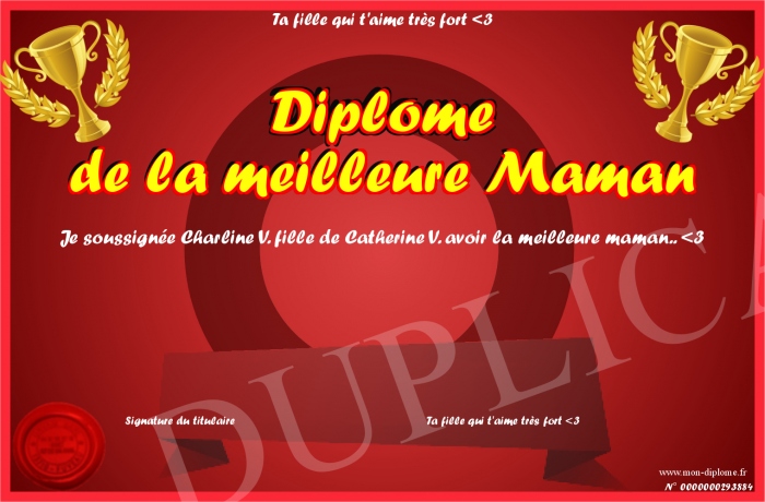Envoyez par email votre Diplome de la meilleure Maman personalisé