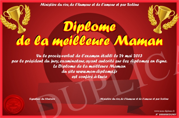 Envoyez par email votre Diplome de la meilleure Maman personalisé