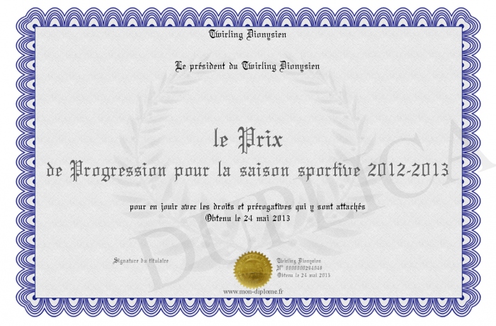 Envoyez par email votre le Prix de Progression pour la saison sportive 2012-2013 personalisé