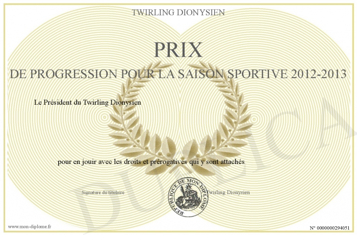 Envoyez par email votre Prix de progression pour la saison sportive 2012-2013 personalisé