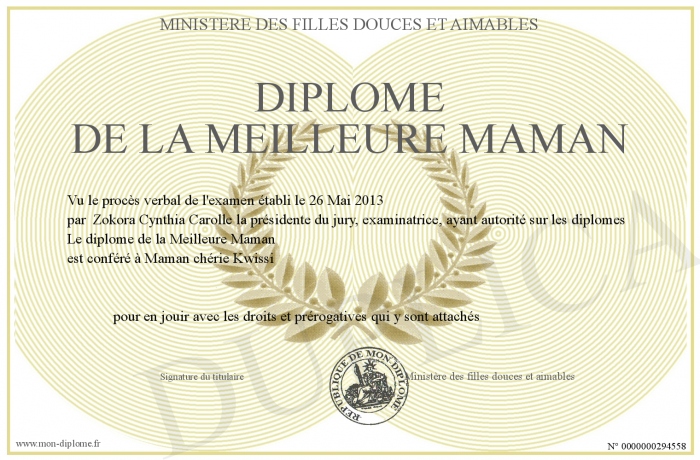Envoyez par email votre Diplôme de la Meilleure Maman personalisé