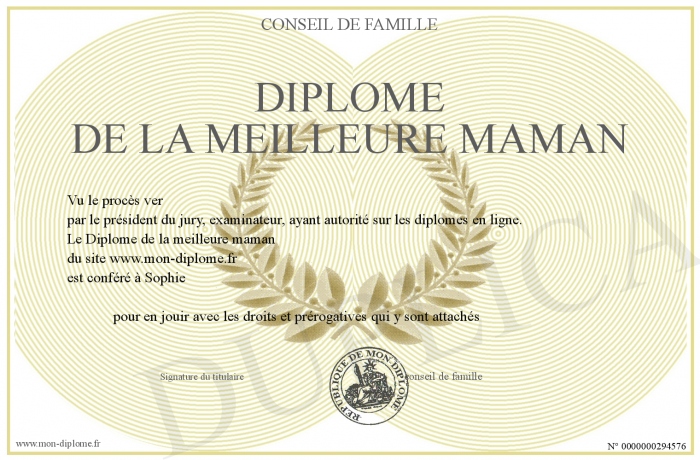 Envoyez par email votre Diplôme de la meilleure maman personalisé