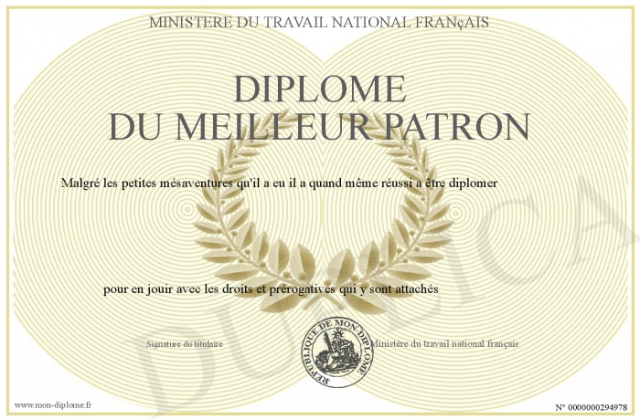 Envoyez par email votre Diplôme du meilleur patron personalisé