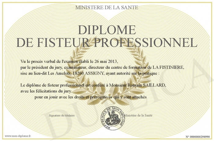 Envoyez par email votre Diplôme de fisteur professionnel personalisé