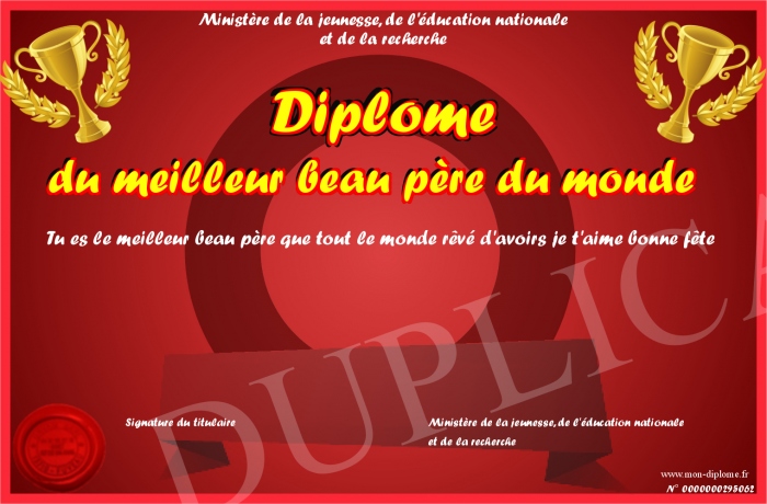 Envoyez par email votre Diplôme du meilleur beau père du monde personalisé