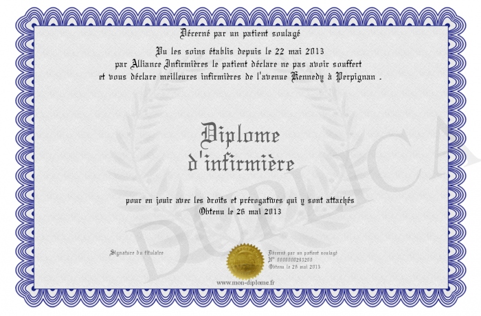 Envoyez par email votre Diplôme d'infirmière personalisé