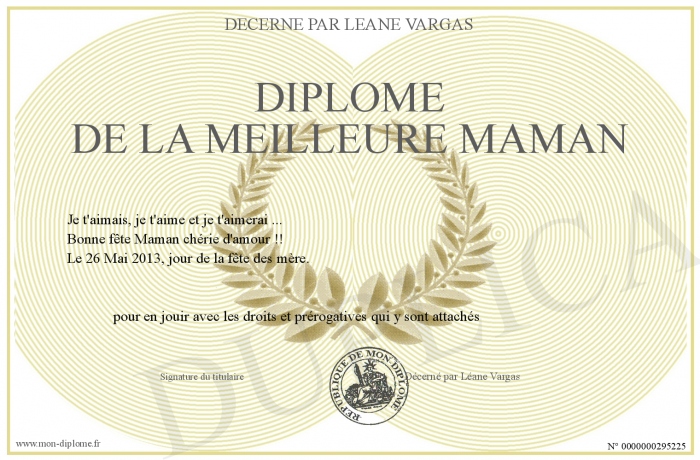 Envoyez par email votre Diplôme de la meilleure Maman personalisé