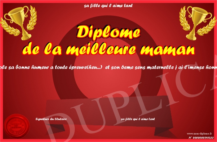 Envoyez par email votre Diplôme de la meilleure maman personalisé