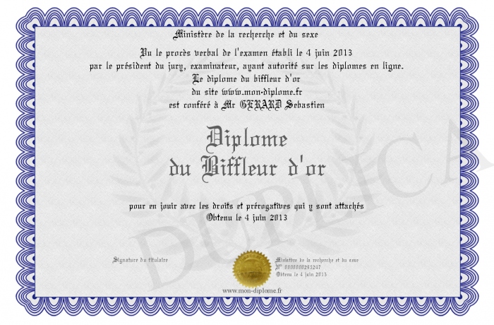 Envoyez par email votre Diplôme du Biffleur d'or personalisé