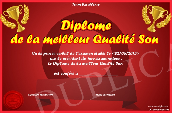 Envoyez par email votre Diplome de la meilleur Qualité Son personalisé