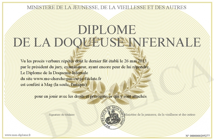 Envoyez par email votre Diplôme de la Doqueuse Infernale personalisé