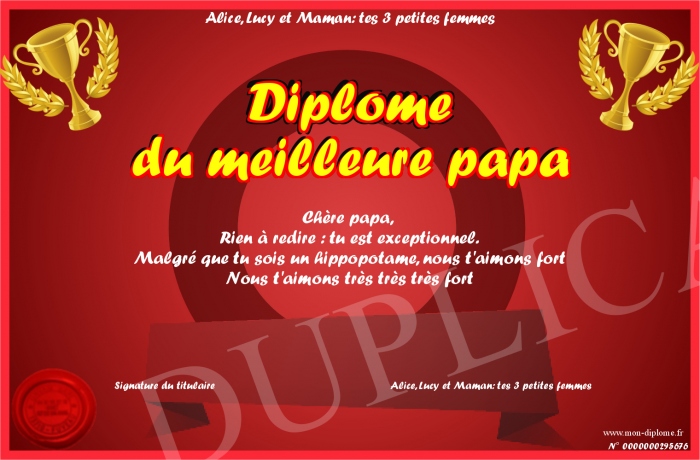 Envoyez par email votre Diplome du meilleure papa personalisé