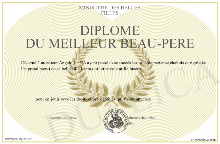 Envoyez par email votre Diplôme du meilleur beau-père personalisé