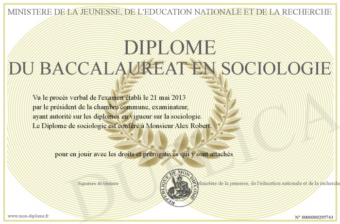 Envoyez par email votre Diplôme du baccalaureat en sociologie personalisé