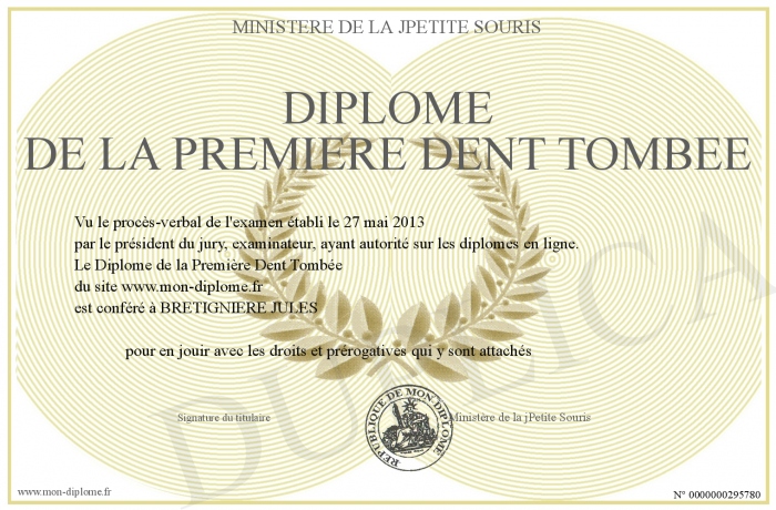 Envoyez par email votre Diplôme de la Première Dent Tombée personalisé