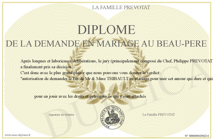 Envoyez par email votre Diplôme de la Demande en Mariage au Beau-Père personalisé