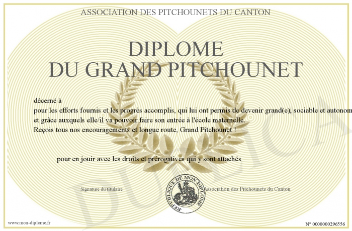 Envoyez par email votre Diplôme du Grand Pitchounet personalisé